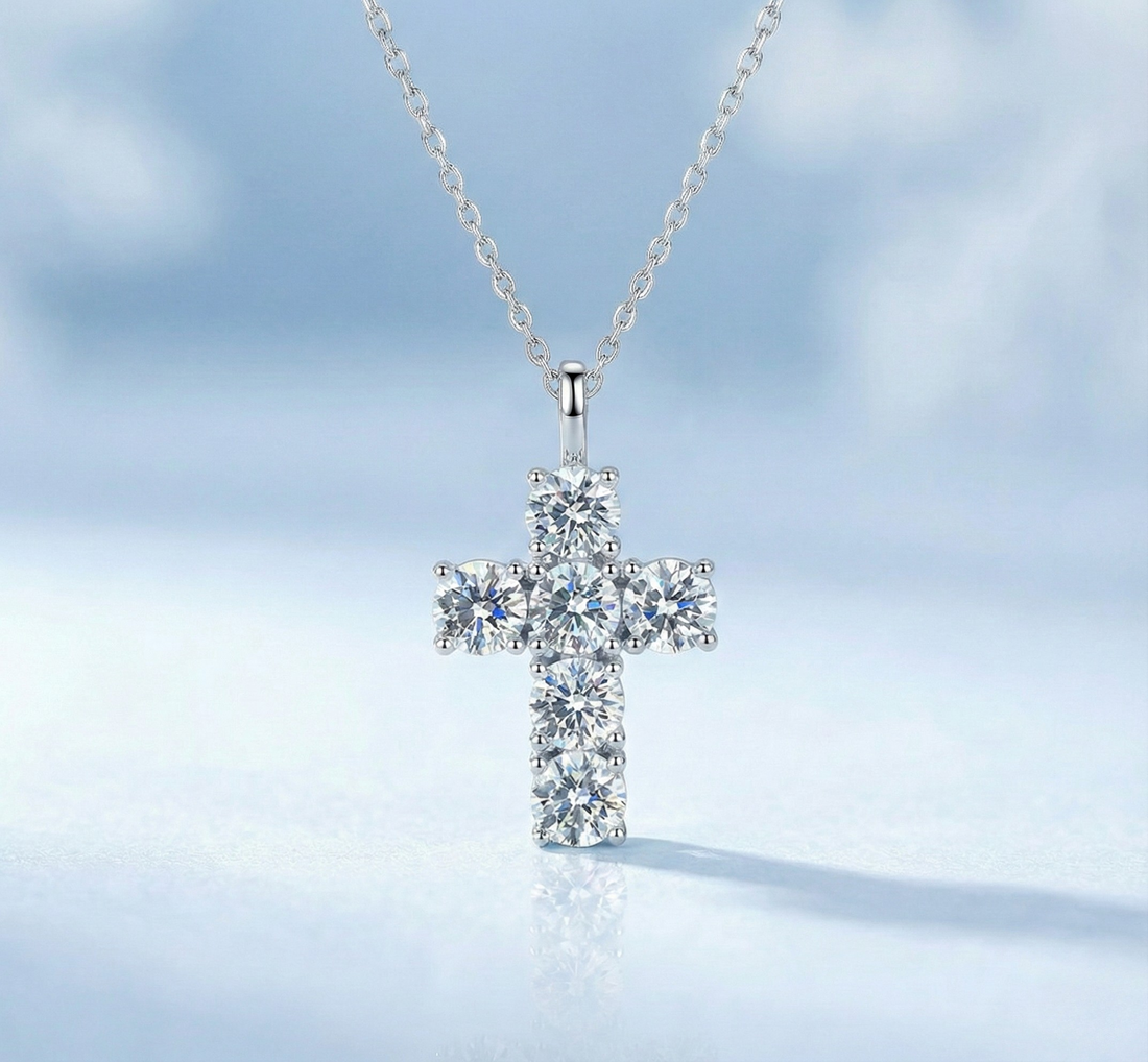 A timeless Sparkle Cross Necklace (925 Sterling Silver, High-Carbon Stones)