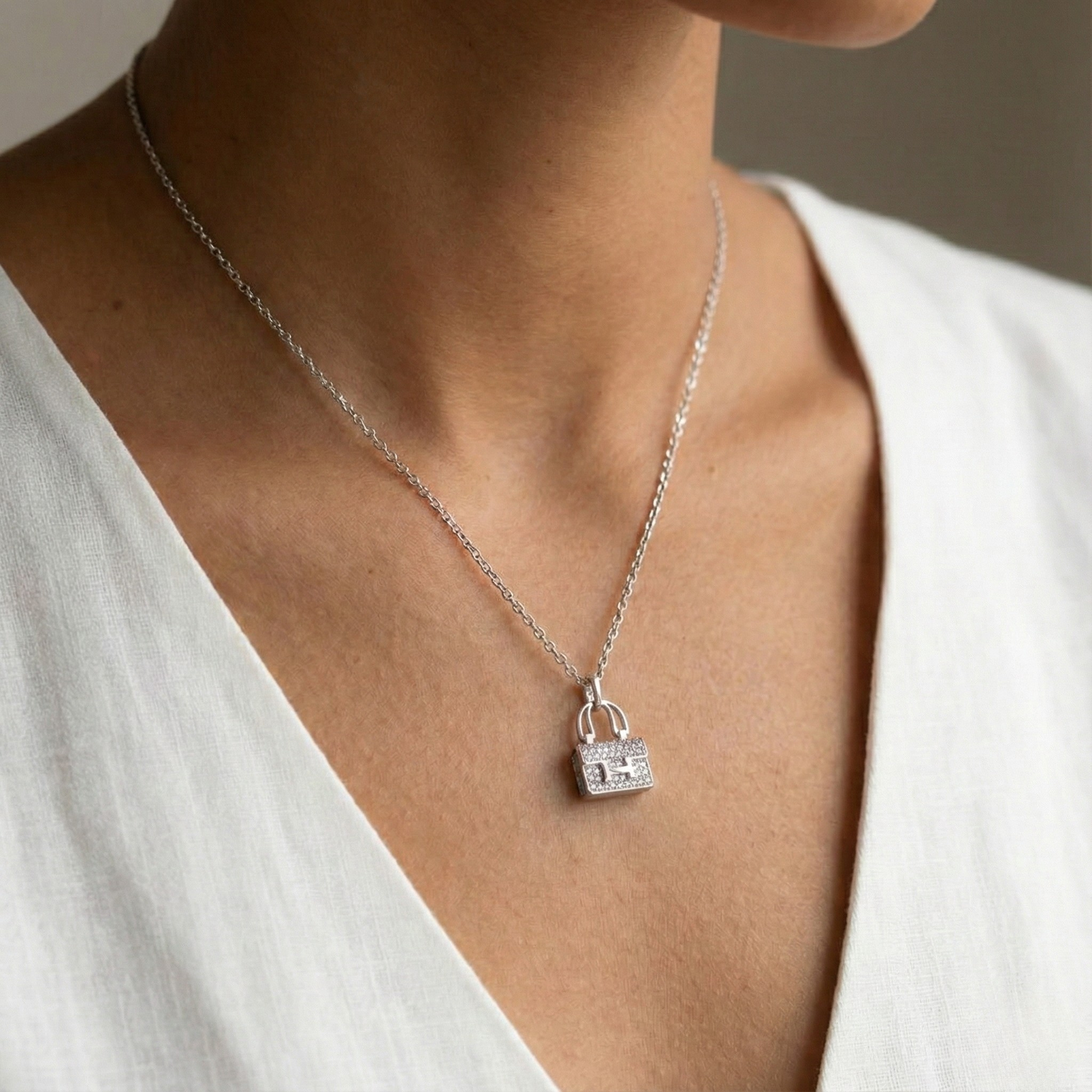 This mini bag pendant necklace brings a playful, everyday charm to your look—minimal enough for daily wear, yet detailed enough to feel special. Crafted in 925 sterling silver with a durable plated finish, it sits beautifully on the collarbone and layers effortlessly with your favourites.